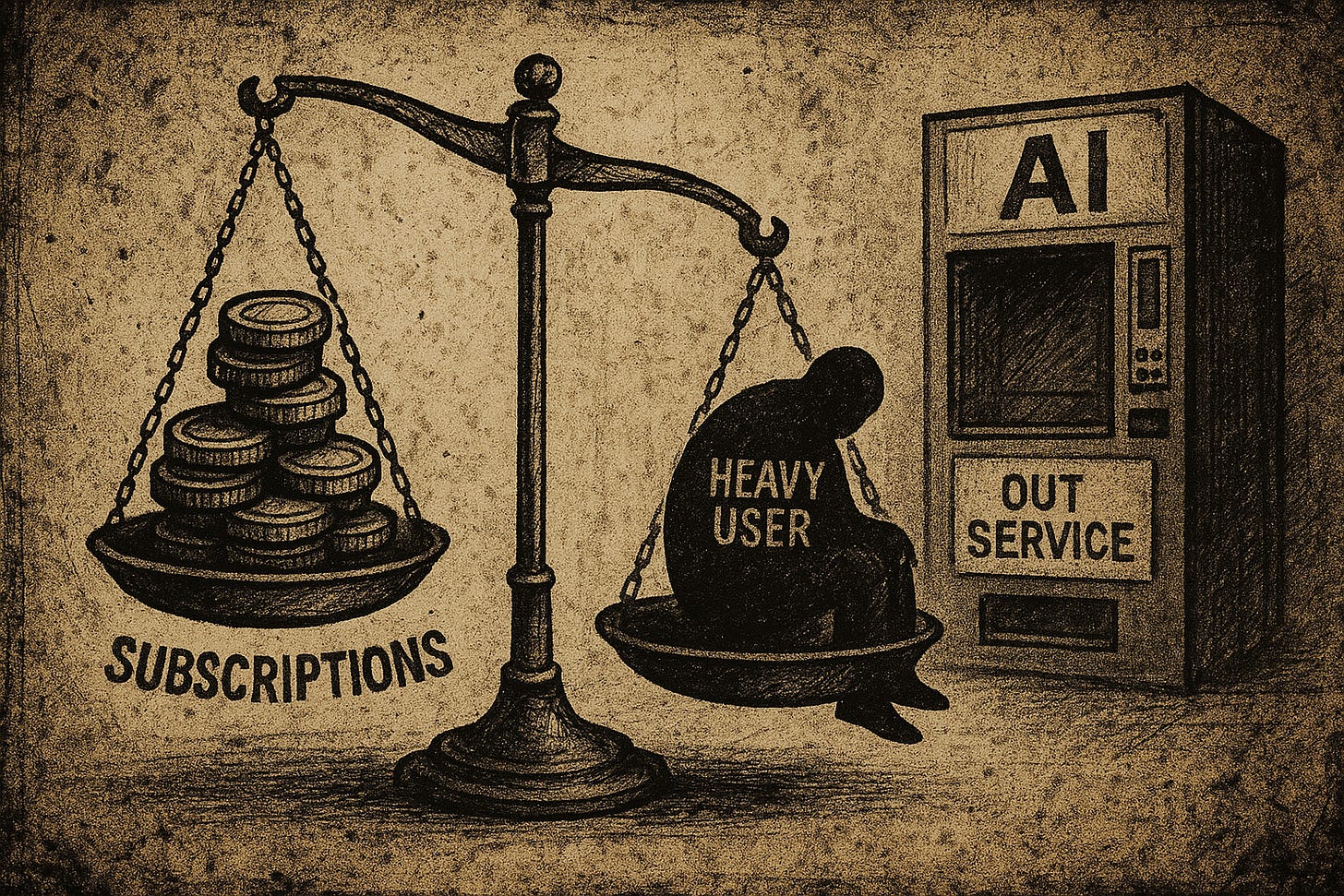 This is a market design problem. Subscription pricing was built for services where marginal costs are close to zero, which is not Generative AI. The only way to align incentives is to let costs flow directly with usage. (FWIW, Ed Zitron here argues why subscriptions are not only unsustainable, but doomed to fail.)
